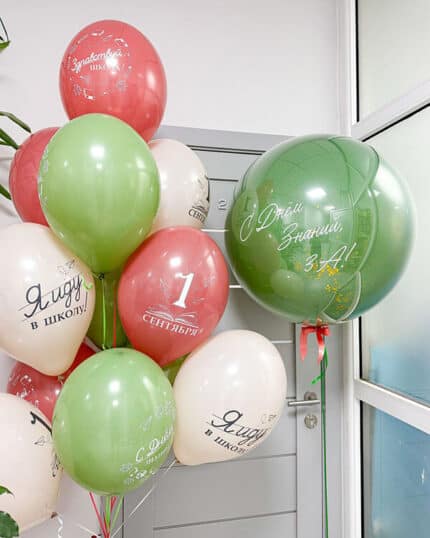 Для создания атмосферы праздника можно выбрать шары в соответствующих цветах — белый, синий, желтый, зеленый или красный. На шары можно напечатать надписи в виде фраз, связанных с праздником, например «1 сентября», «День Знаний», «Ура, школа!», «Новый учебный год», «Отличной учебы», «Успехов в учебе» и т.д. Также на шары можно нанести изображения в виде цифр, букв, школьных принадлежностей или персонажей из мультфильмов.