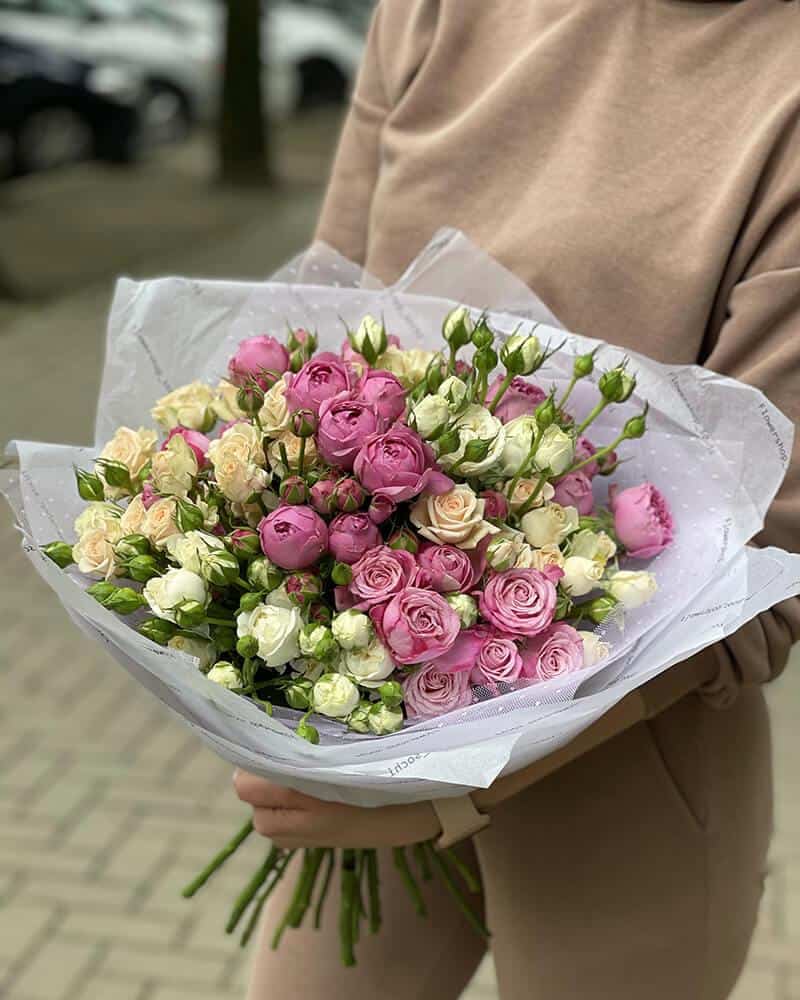 - 25 веточек кустовых роз нежных оттенков